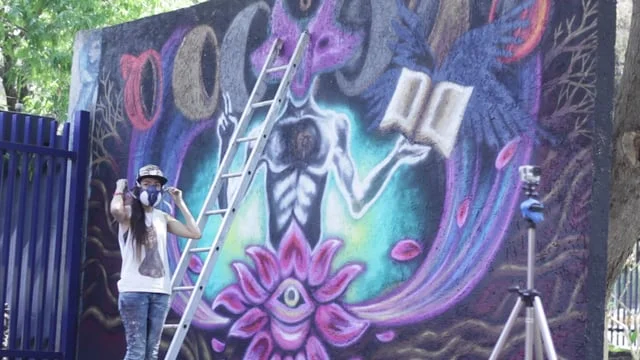 Mural painted at CONSTRUCTO 17 Street-Art Festival in the UNAM Facultad de Ciencias Politicas y Sociales. Mexico City, MEXICO. 2017.